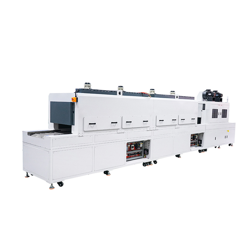 这款紫外线固化机总长7.3米,顶部配置 3 支 5.6kw 汞灯。侧面 2 支 3kw 汞灯、多面照射设计,可对产品的四个方向进行紫外线覆盖,尤其适用于那些结构复杂、需要多方位照射的产品,确保主要接触面都能得到均匀充分的固化处理,有效提升产品固化质量与一致性。